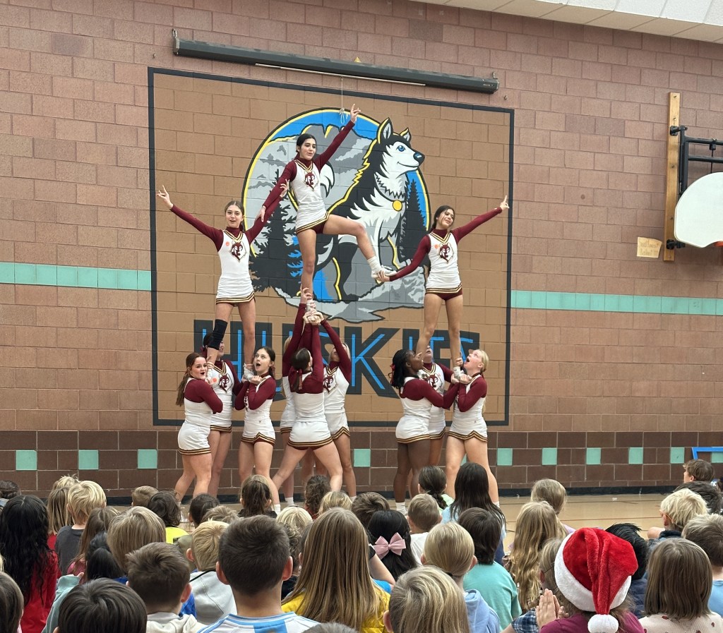 On Friday, December 6, we started our day with our December PRIDE assembly. Our students were so excited when Rocky Mountain’s Cheer Squad, led by Coach Lauren Roth, appeared. Our students are always excited when Rocky’s Cheer teams make time to support our PRIDE assemblies. One student said, “I love when they come!” The cheer team raised the roof, and made the PRIDE assembly so fun! What a way to honor our Johnson Huskies with your time Rocky students. We appreciate your support.